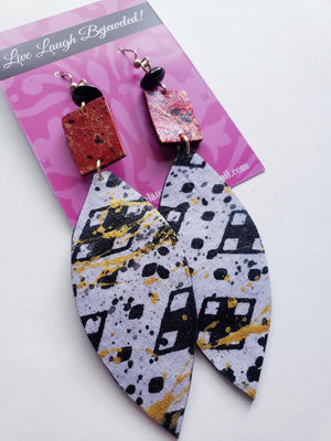 All earrings in this collection are custom-painted, which means they are one-of-a-kind.  Upon request, all pieces can be recreated, however, no two pieces will be exactly the same.  All metal earring components are nickel-free and can be worn in the most sensitive ears.